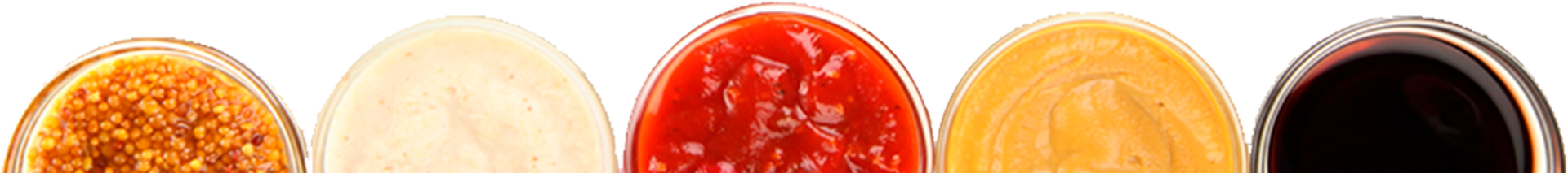 Mayonesa, barbacoa, miel y mostaza, Jack Daniel's, alioli, salsa de cheddar, salsa de roque, salsa brava, salsa argentina, guacamole y nata agria.